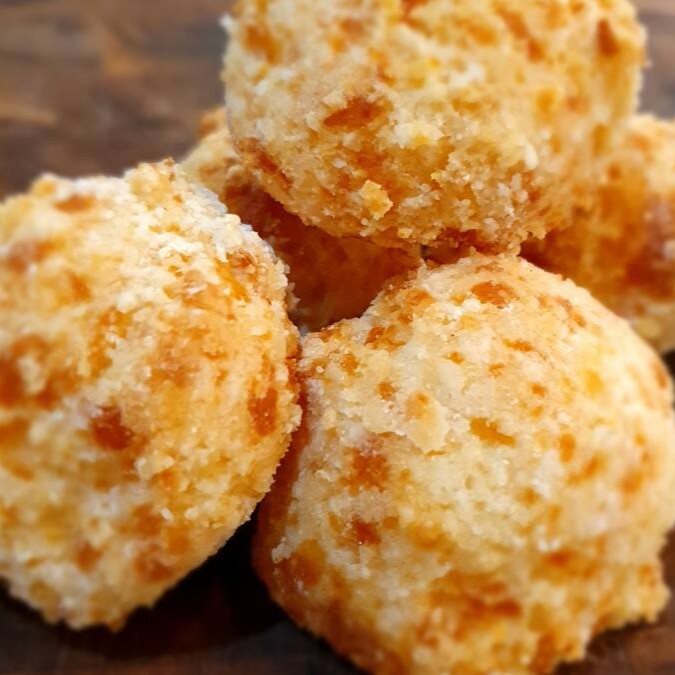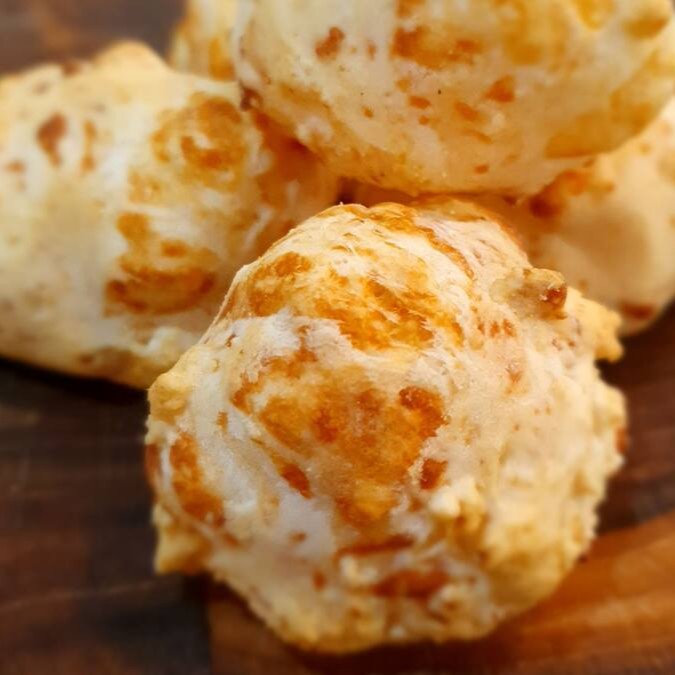 Pão de queijo francês no melhor estilo mineiro. Da última fornada, fresquinho.
