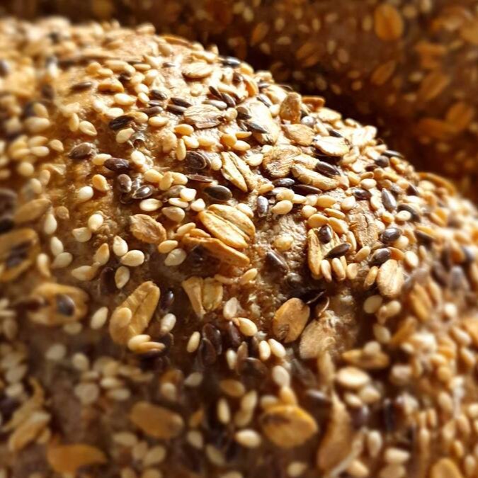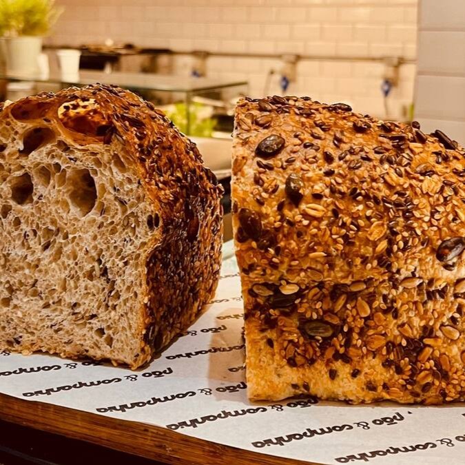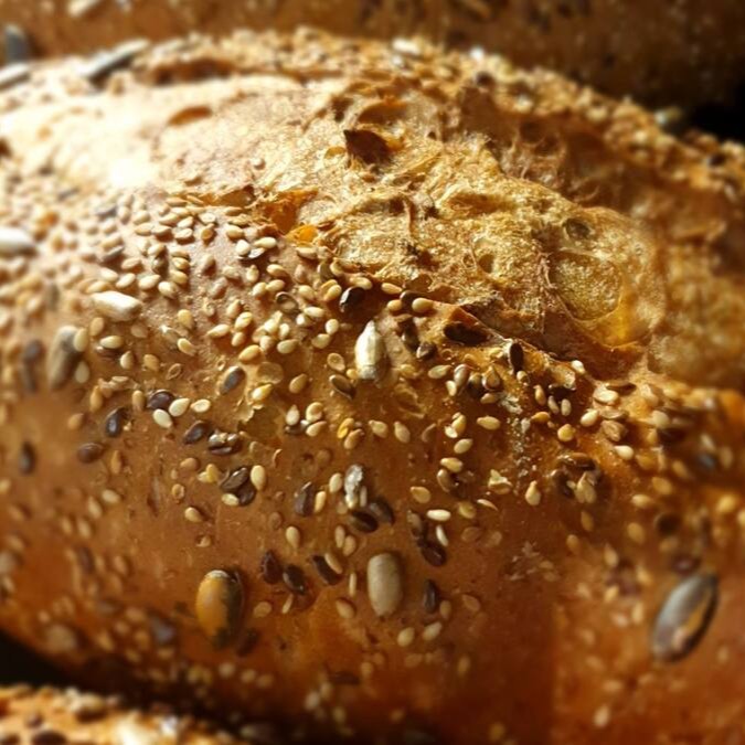 O melhor entre os melhores! Pão multi grão Fermentação Natural, super saboroso e saudável, cheinho de grãos: sementes de abóbora, girassol, linhaça, aveia e gergelim, farinhas de trigo italiana e centeio. Ma-Ra-Vi-Lho-So!