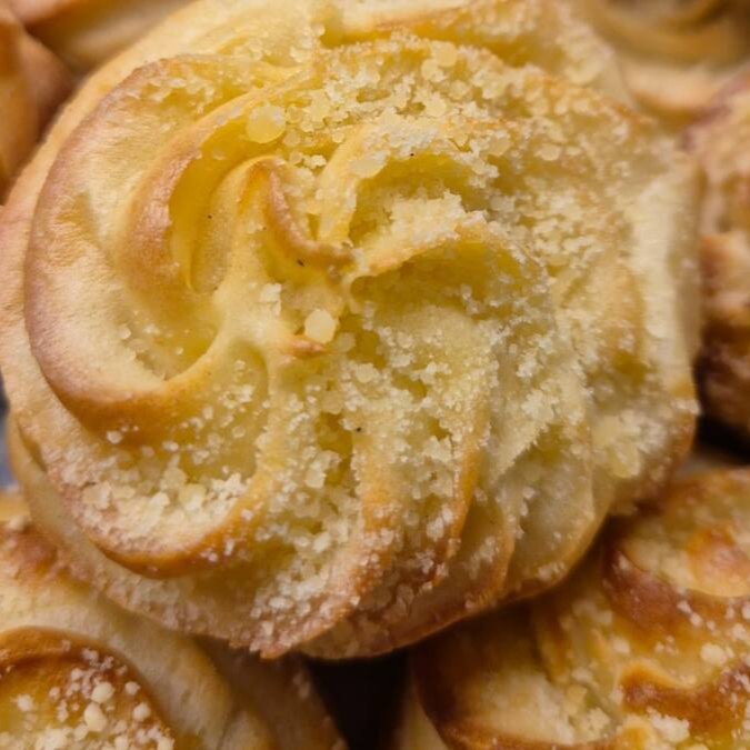 Biscoitinho/ Rosquinha oca, coberta com açúcar. Maravilhosa pra acompanhar chá ou café.