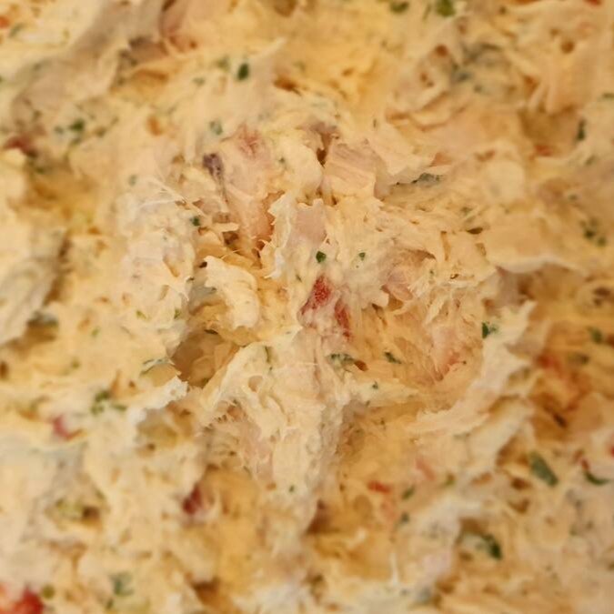 A mais vendida entre as nossas pastas! Produzida com frango desfiado grosseiramente, maionese, salsão, cebola, tomate e temperos. Peça um pãozinho fresco e... O lanche está pronto! 200g.