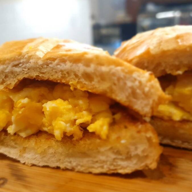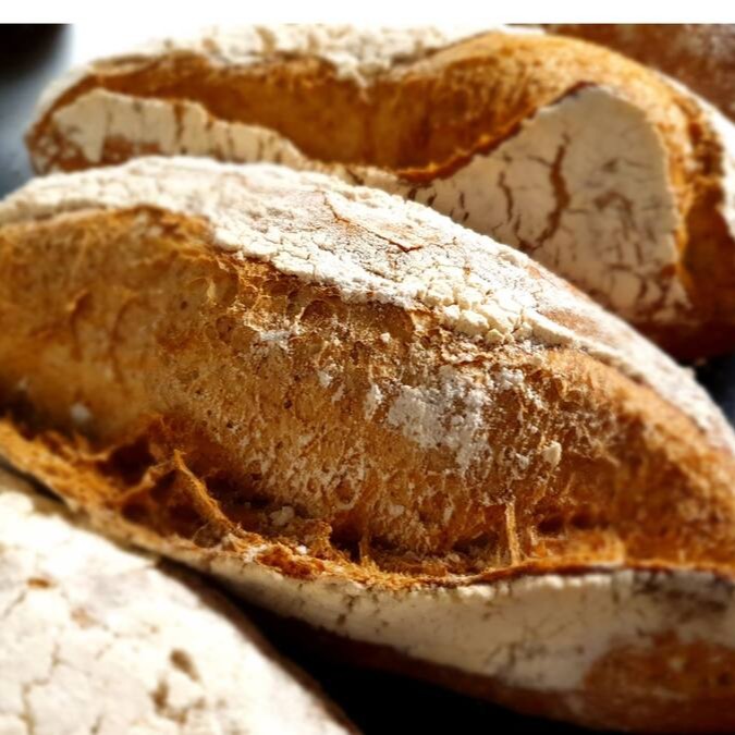 Pão de fermentação artesanal, com fermento caseiro que descansa 30 horas, o que deixa um sabor bem característico, delicioso!