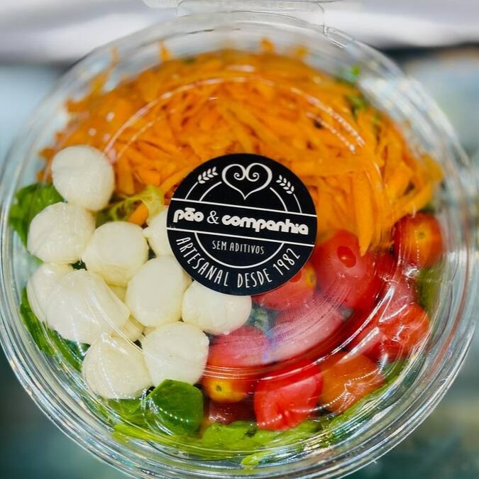 Mix de folhas, cenoura ralada, tomatinhos e cubos de Minas frescal. Acompanha molho de mostarda e mel.