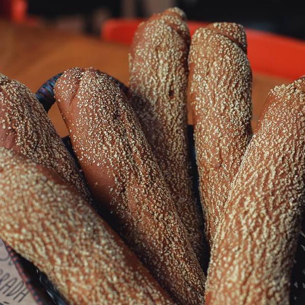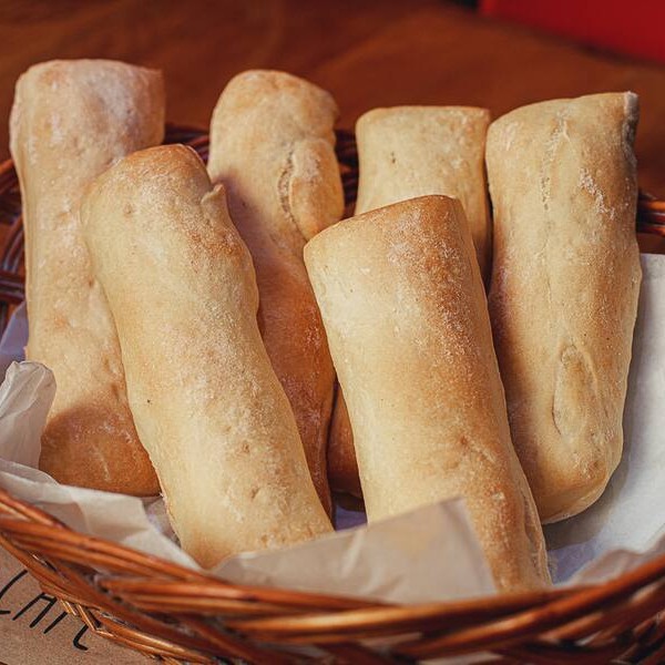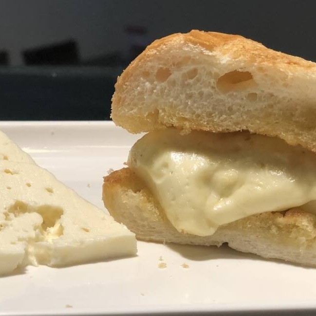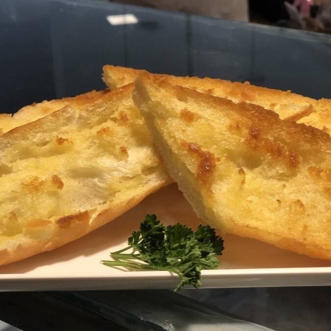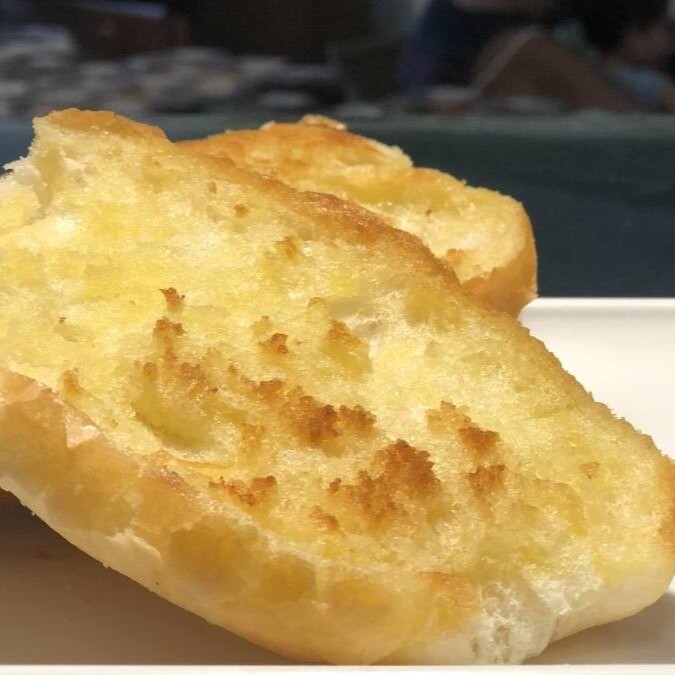 2 fatias de pão italiano, patê de alho, peito de peru, queijo minas, orégano, berinjela italiana, alface e tomate.