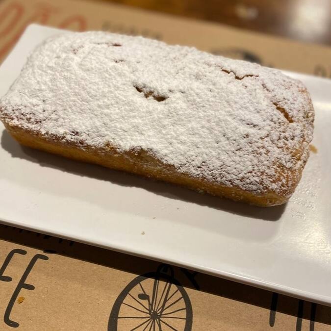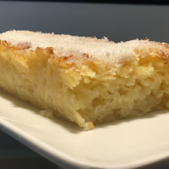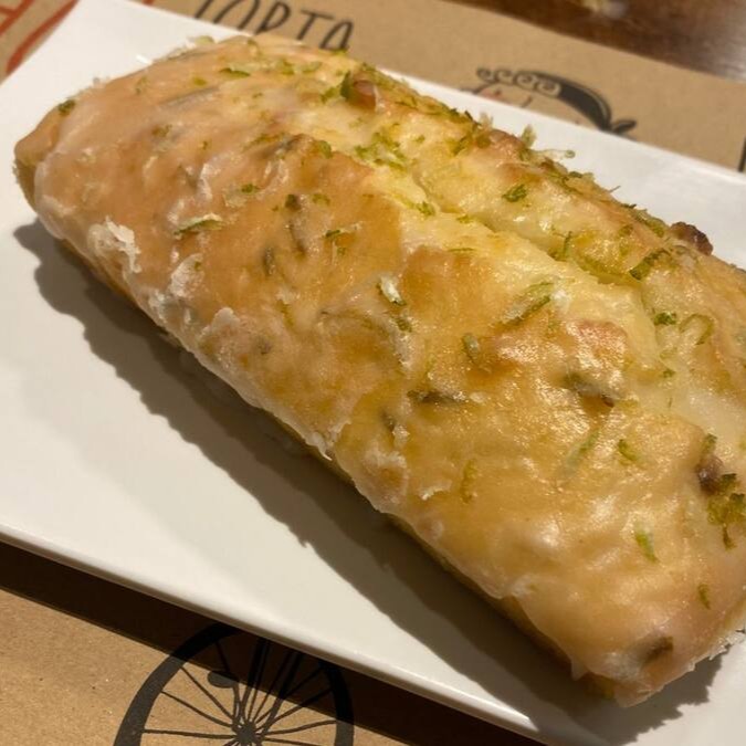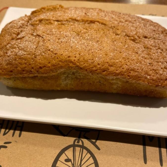 Bolo feito com farinha de rosca, canela em pó, açúcar mascavo e recheio de leite condensado