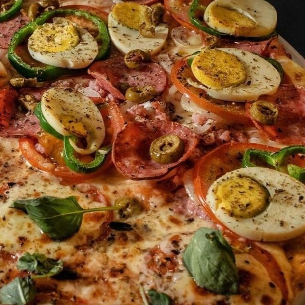 Pizza Gigante (40cm) - de 10 a 12 fatias Podendo escolher até 2 sabores Servindo até 4 pessoas.