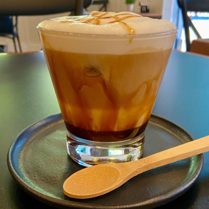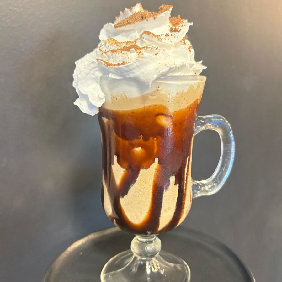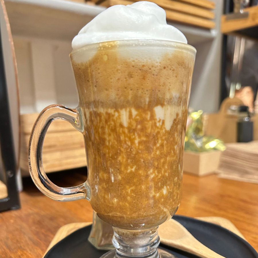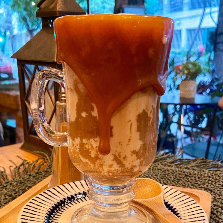 EXPRESSO, CARAMELO, GELO E A CREMA DO LEITE GELADA