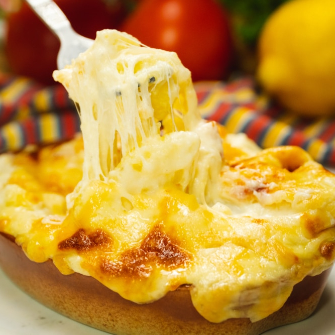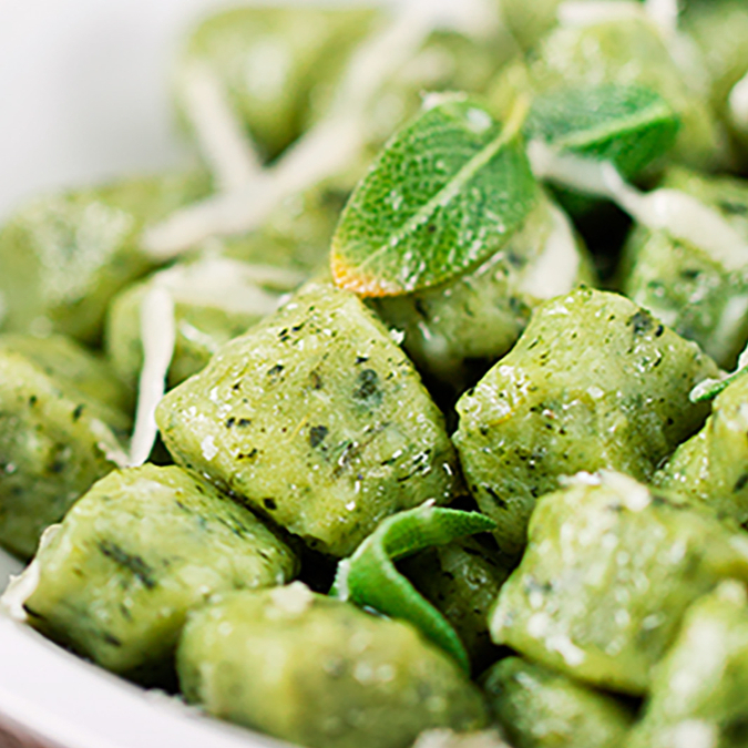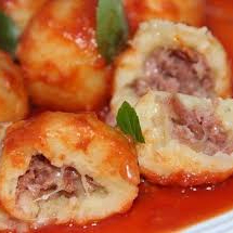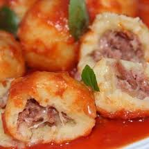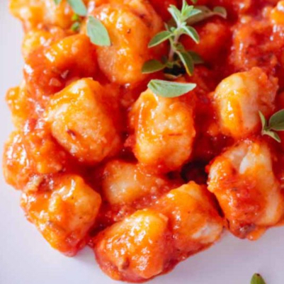 Gnocchi de batata recheado com mozzarella ao molho sugo ou Gnocchi de aipim recheado com calabresa ao molho napolitano