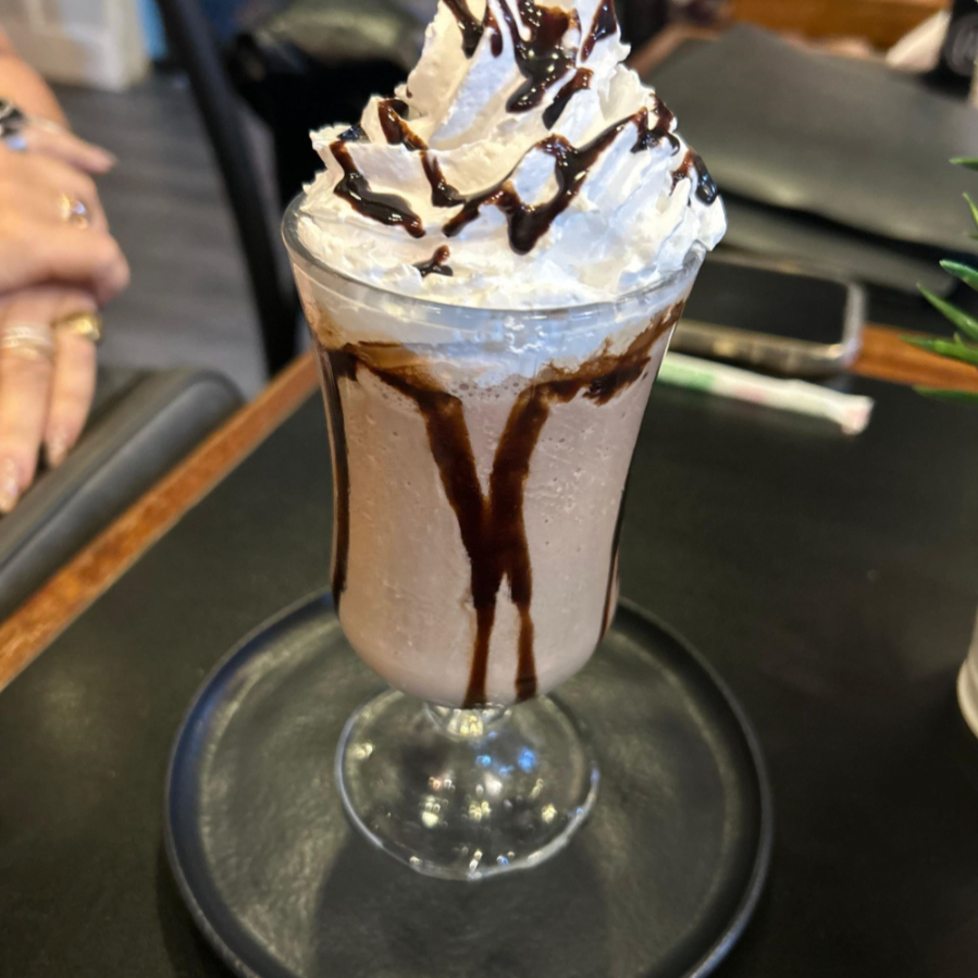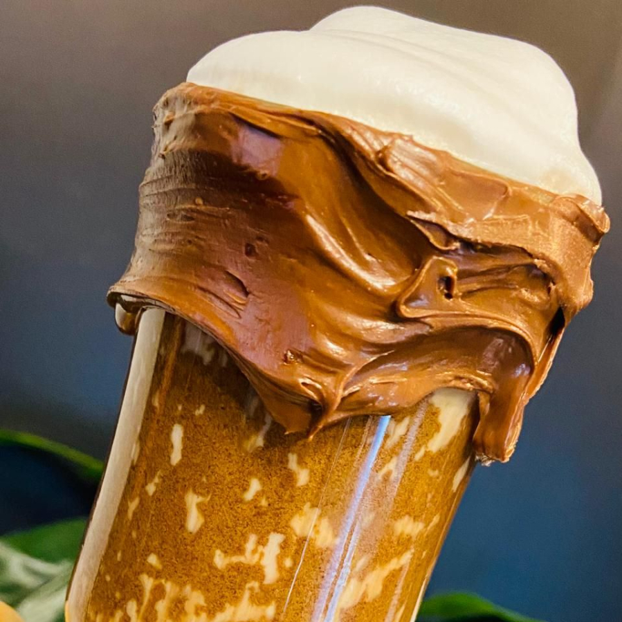 CHOCOLATE CREMOSO BATIDO COM LEITE, COBERTURA DE CHANTILLY E CALDA DE CHOCOLATE