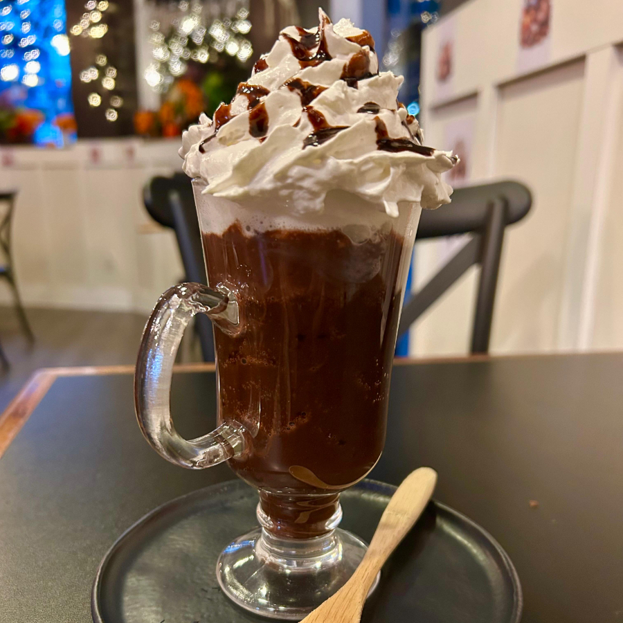 O CHOCOLATE QUENTE DA CASA COM COBERTURA DE CHANTILLY