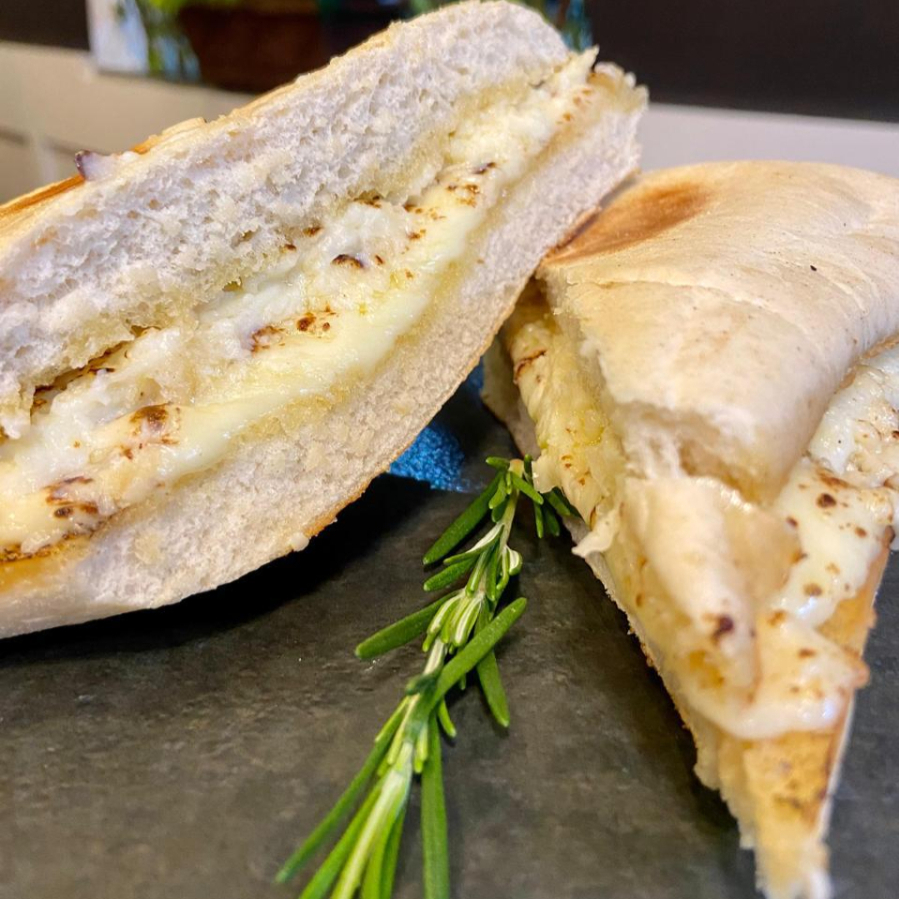 PÃO CIABATTA, MUÇARELA, PROVOLONE, PARMESÃO E CATUPIRY
