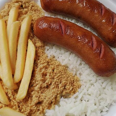 Suculenta linguiça toscana grelhada no ponto perfeito, acompanhada de arroz soltinho, feijão temperado da casa, farofa crocante e batatas fritas douradinhas. Marmita 500ml