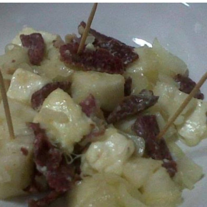 Carne seca com aipim e cebola