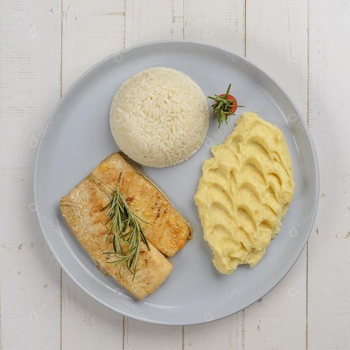 Filé De Peixe Com Arroz + Purê De Batata + Feijão + Guaraná Leão 300ml