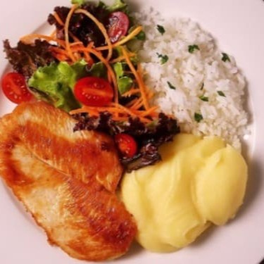 Delicie-se com o nosso Frango Grelhado, suculento e bem temperado, acompanhado de um cremoso Purê de Batatas, feito com batatas selecionadas e preparado com todo o carinho. Para complementar, temos um arroz branco, soltinho e aromático, e um caldo de feijão rico e saboroso, que traz um toque caseiro para a refeição. Não podemos esquecer dos legumes cozidos, frescos e nutritivos, que equilibram perfeitamente o prato. Para finalizar, um refrescante Guaraná de 300ml, a bebida perfeita para essa combinação. Tudo isso faz parte do nosso Cardápio Executivo com Bebida. Uma refeição completa e deliciosa, esperando por você!