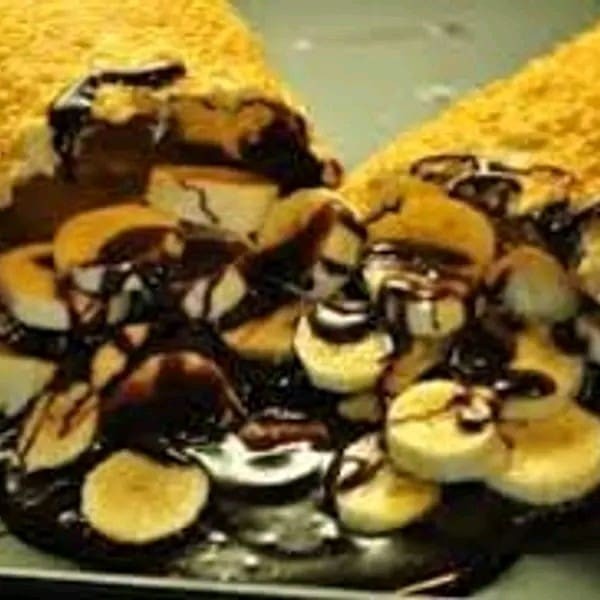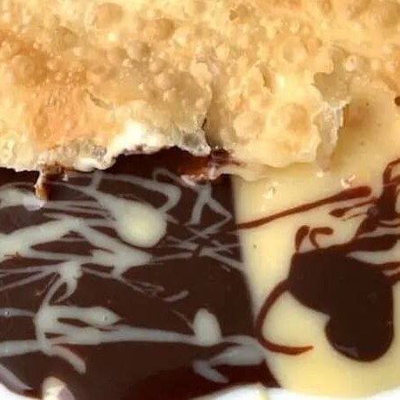 Um crocante e saboroso pastel recheado de chocolate branco e preto. Nossa massa pastel doce é de 15cm.