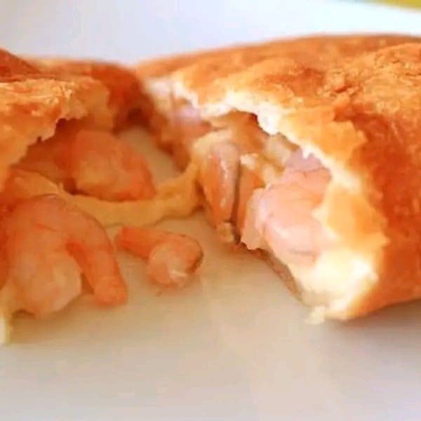 Um crocante e saboroso pastel recheado de Camarão com Cream cheese. Nossa massa é de 22cm.