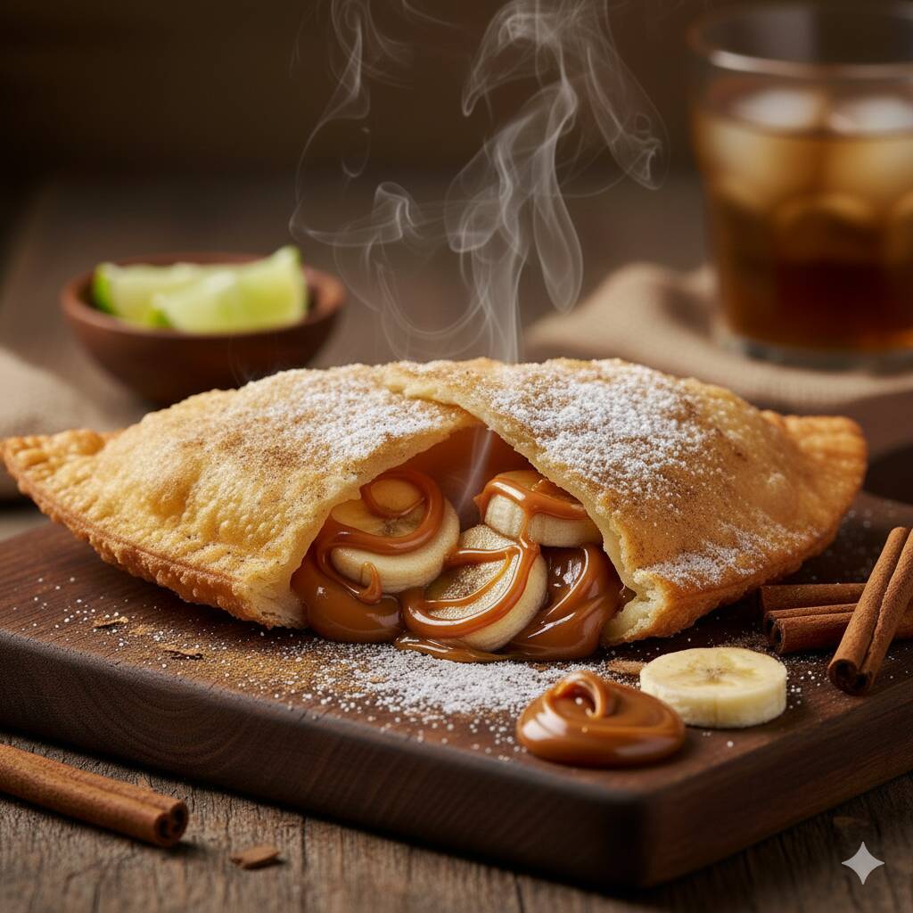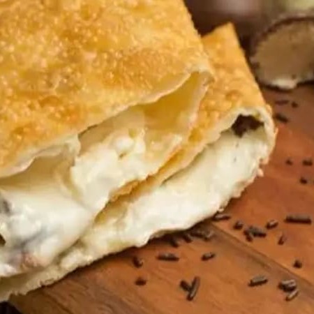 Um crocante e saboroso pastel recheado de chocolate branco. Nossa massa pastel doce é de 15cm.