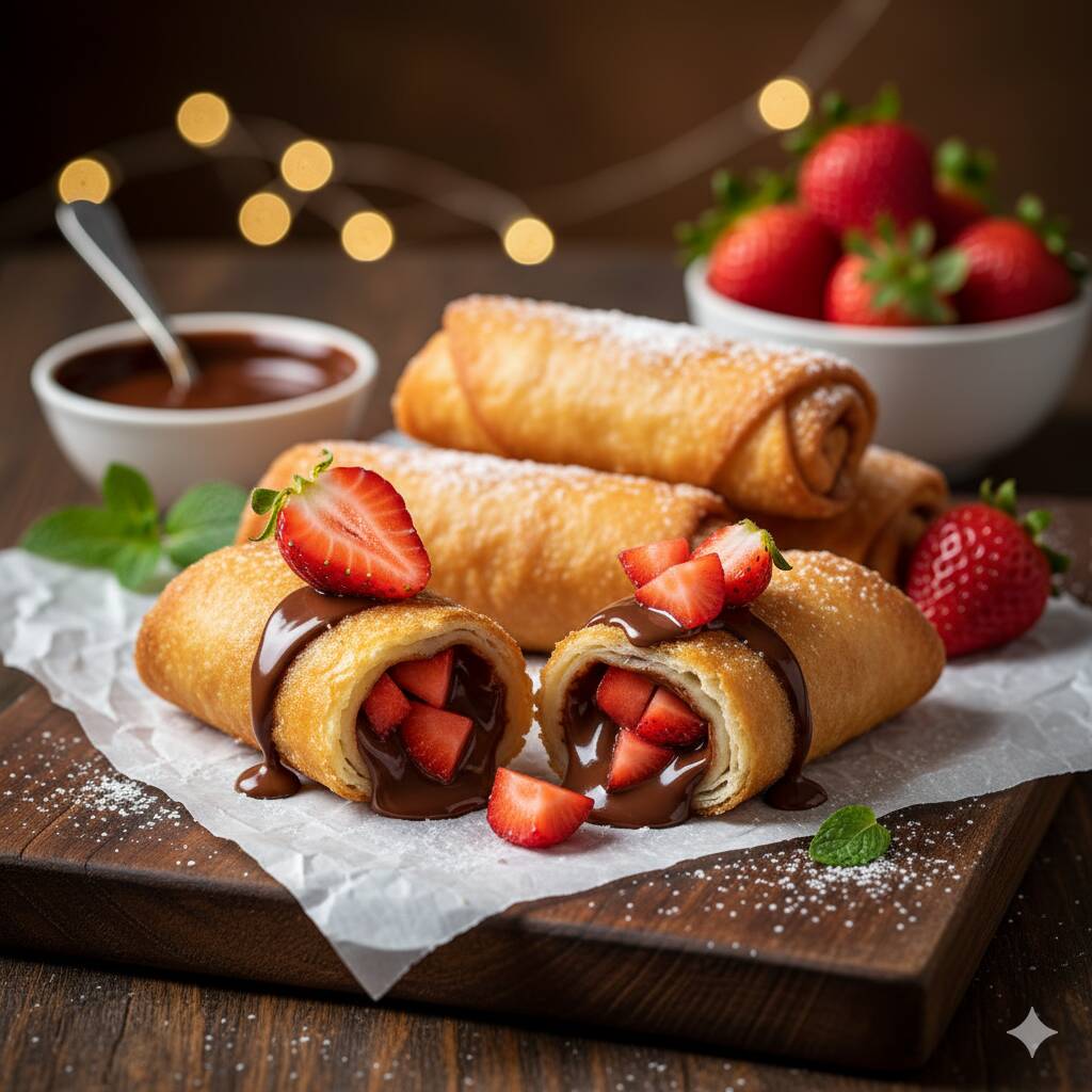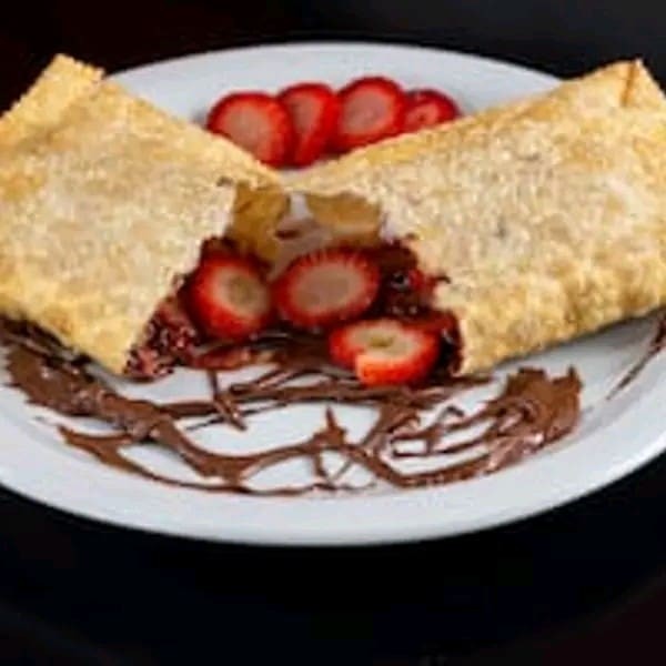 Rolls de Chocolate com morango. Descubra a perfeição em um snack! Nossos Rolls são rolinhos de massa pastel crocante, generosamente recheados com chocolate e morango. Ideal para compartilhar ou saborear sozinho! Escolha o tamanho do seu Rolls: 15cm ou 22cm