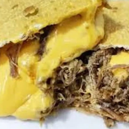 Um delicioso e crocante pastel recheado com carne cupim com mussarela. Nossa massa é de 22cm.