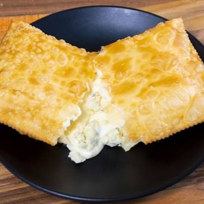 Um delicioso e crocante pastel recheado com Mussarela, Catupiry, Cheddar e Gorgonzola. Nossa massa é de 22cm.