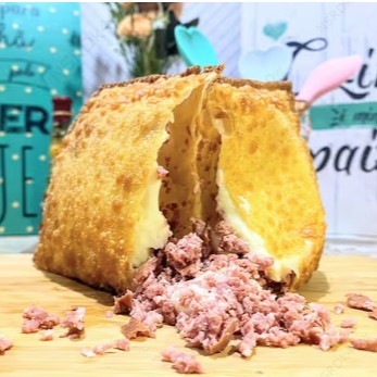 Um dos destaques da Dani, é uma tentação para os amantes de carne. A carne moída, cuidadosamente selecionada e preparada com maestria, se funde harmoniosamente com a azeitona, trazendo um toque de sabor mediterrâneo que faz deste pastel uma verdadeira explosão de sabores. A combinação resulta em uma experiência culinária inesquecível. Além de saboroso, é generoso em tamanho, tornando-se a opção perfeita para uma refeição repleta de satisfação.