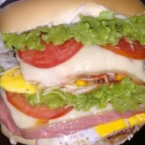 Pão,calabresa,ovo,bacon,queijo,presunto,cheddar,batata palha,salada(Tomate,Cebola E Alaface)