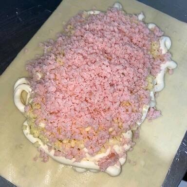 Pastel Sabor Pizza Com Muçarela, Presunto E Orégano.