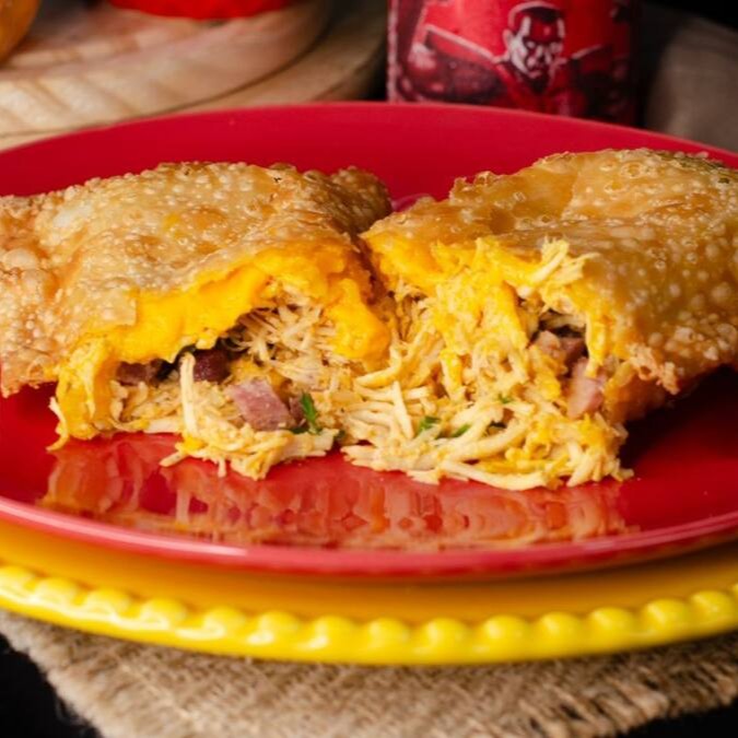 Pastel de 22cm recheado com frango desfiado temperado, cheddar derretido e uma generosa camada de bacon em cubinhos. Uma combinação irresistível que une cremosidade e crocância em cada mordida!