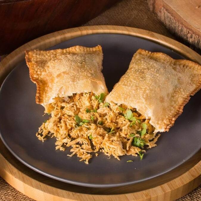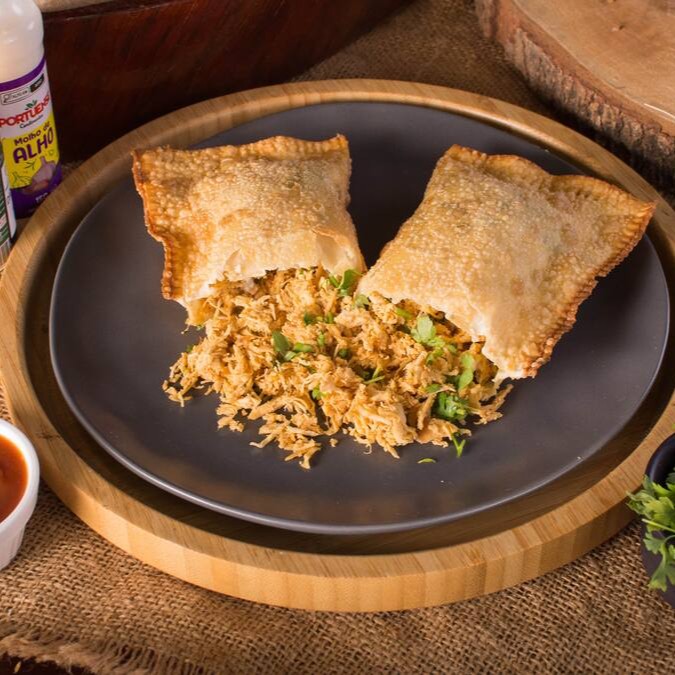 Pastel crocante de 22cm recheado com frango desfiado, bem temperado e envolvido com salsinha fresca. Uma opção leve e deliciosa, perfeita para quem busca sabor caseiro em cada mordida!