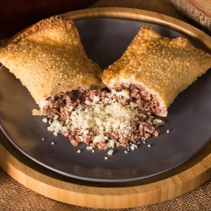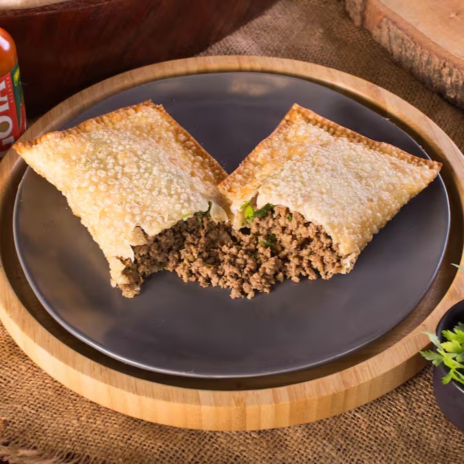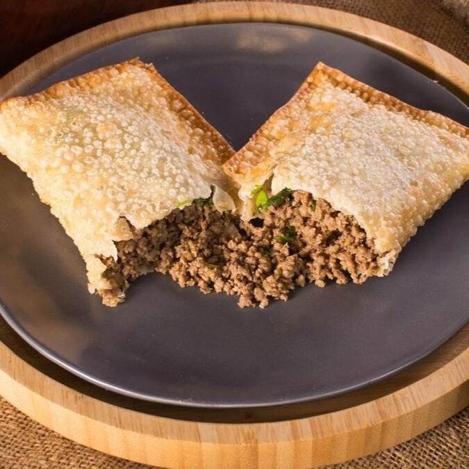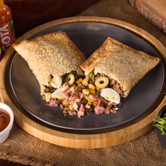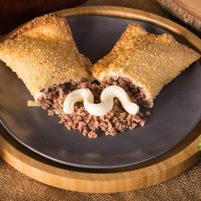 Pastel generoso de 22cm recheado com carne moída, calabresa triturada, cebola e pimentão fatiados, queijo muçarela e salsa fresca. Uma explosão de sabores intensos e irresistíveis!
