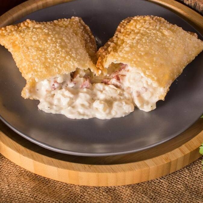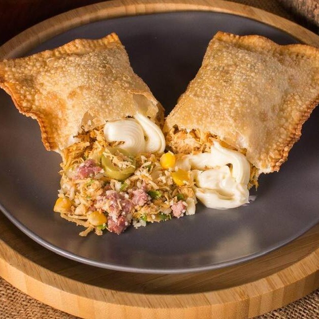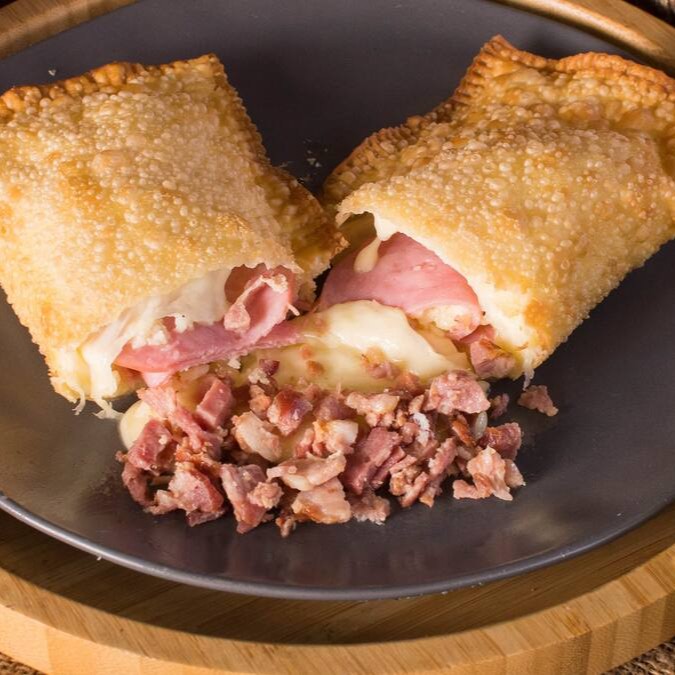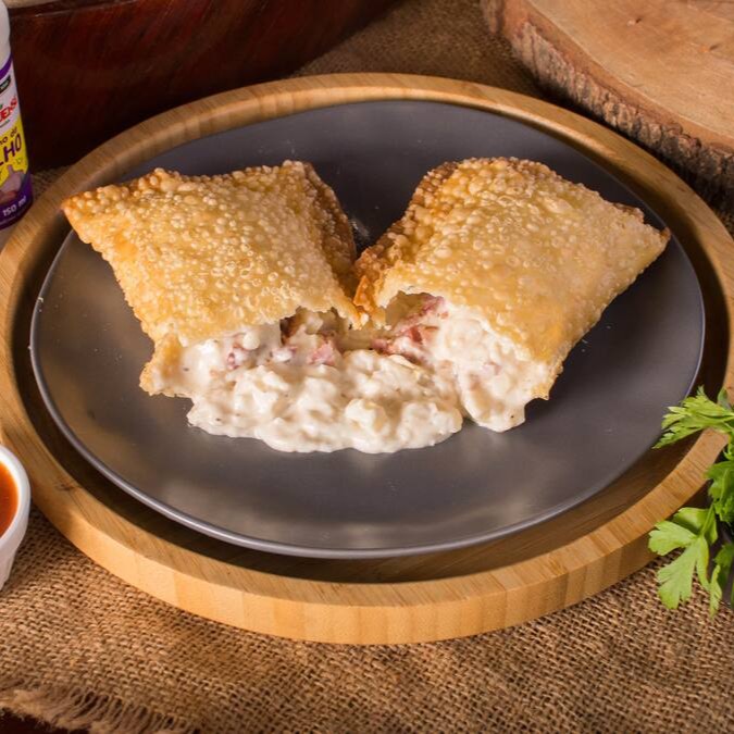 Um clássico com um toque especial! Massa crocante recheada com creme branco suave, palmito em cubinhos e o sabor marcante do bacon crocante. Uma explosão de texturas e sabores a cada mordida!
