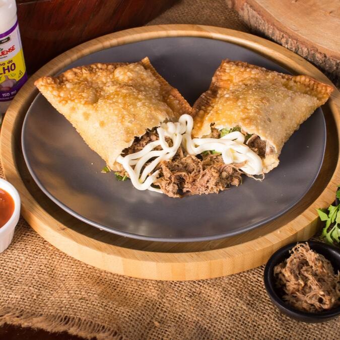 Pastel De Costela Desfiada Com Catupiry Original E Salsa Fresca