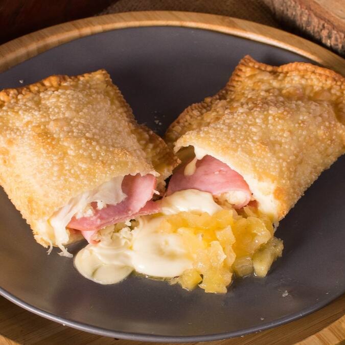 Pastel De Lombo Canadense Com Muçarela E Abacaxi Caramelizado