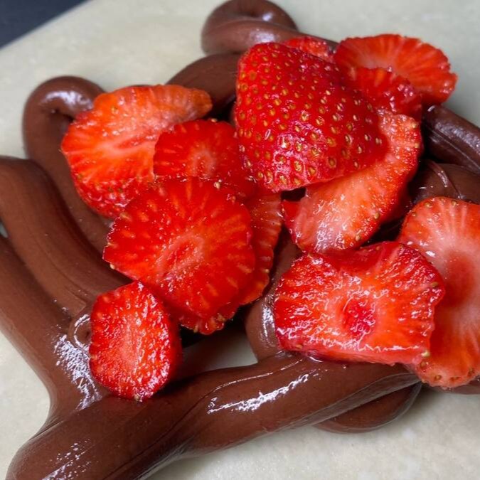 Pastel de 22 centímetros recheado com chocolate ao leite tipo barra e morangos frescos em rodelas. A união perfeita entre o doce intenso do chocolate e o toque azedinho e refrescante do morango. Uma explosão de sabor a cada mordida!
