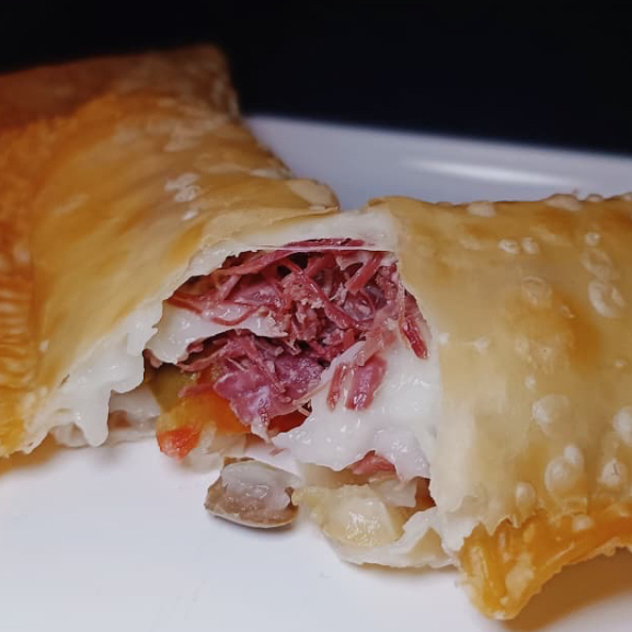 DELICIOSA CARNE MOIDA,QUEIJO MUSSARELA,OVO,TOMATE,CEBOLA E CATUPIRY