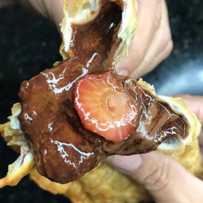 QUEIJO ,CHOCOLATE BRANCO E MORANGO