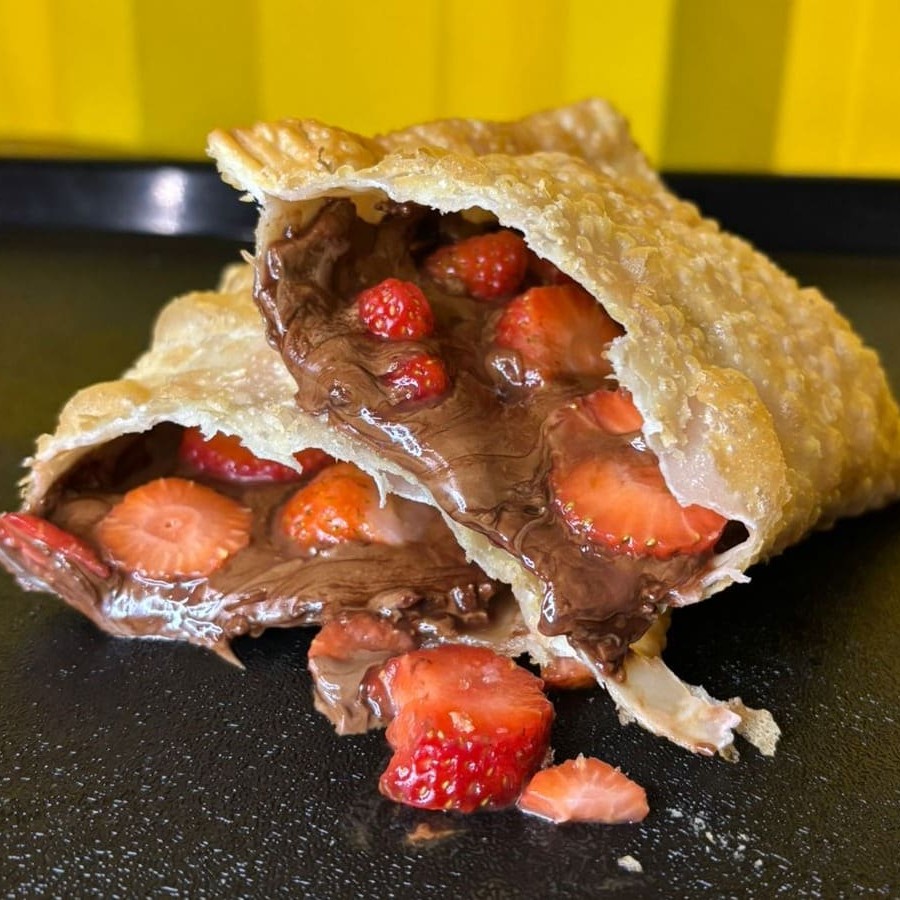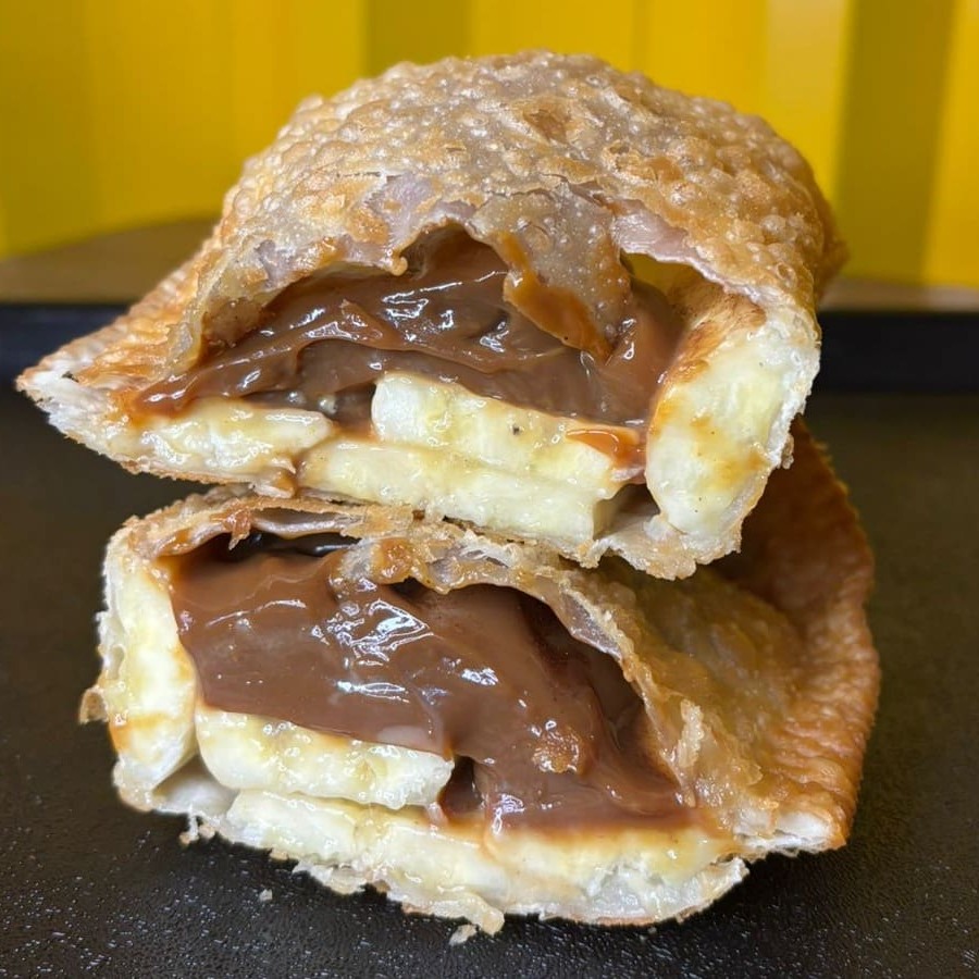 Uma famosa combinação de banana, doce de leite, canela e açúcar em uma crocância única. Um pastel doce irresistível, perfeito para finalizar qualquer refeição com um toque de doçura. Dica Do Torres: Fica perfeito com a massa sabor Chocolate! Nossos pastéis possuem 20 cm, com recheio do início ao fim.