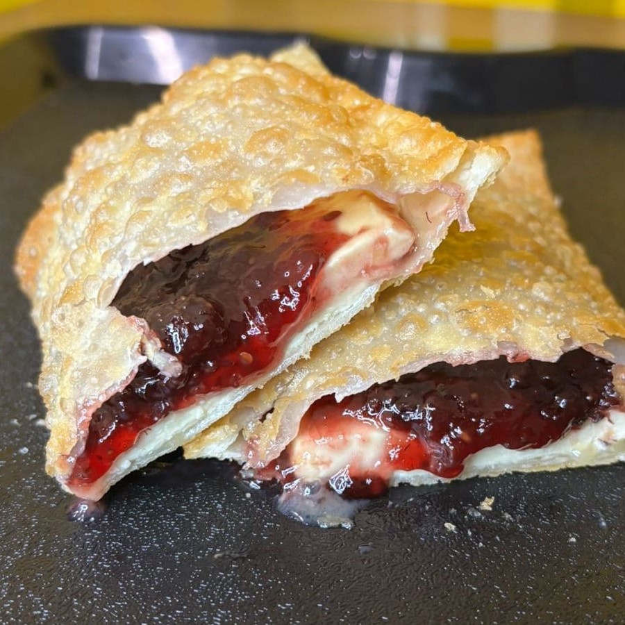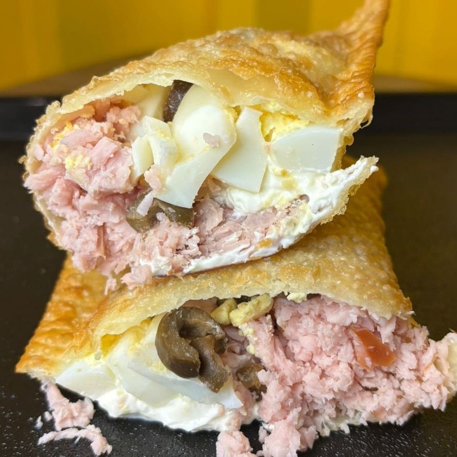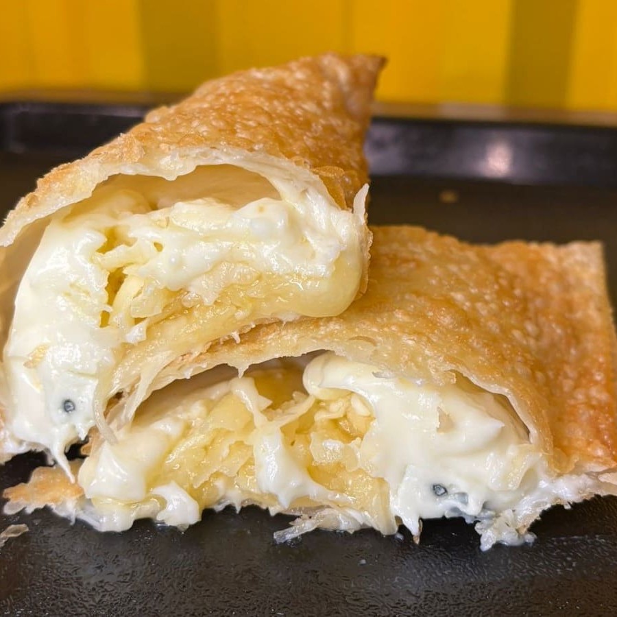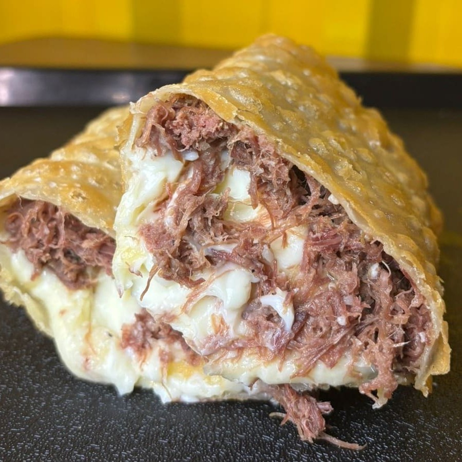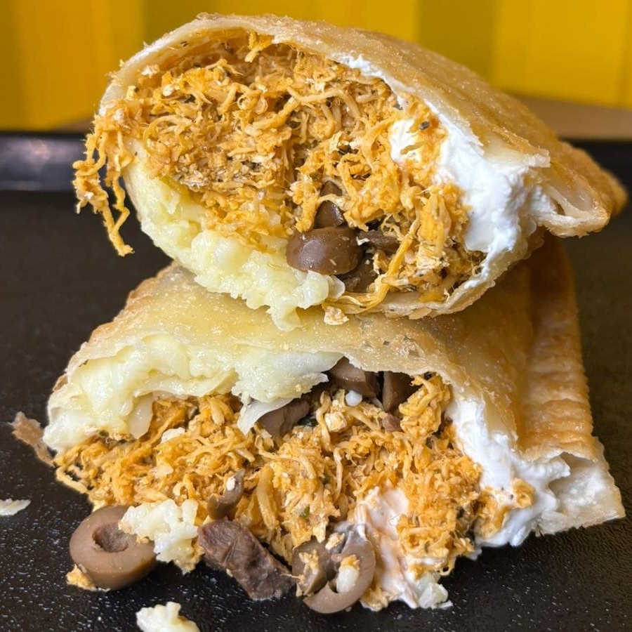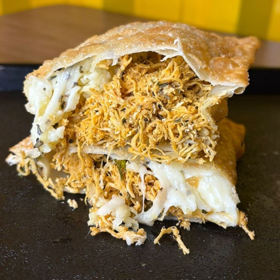 Frango desfiado suculento, combinado com o toque cremoso do cream cheese. Um clássico com uma pitada de sofisticação. Nossos pastéis possuem 20 cm, com recheio do início ao fim.