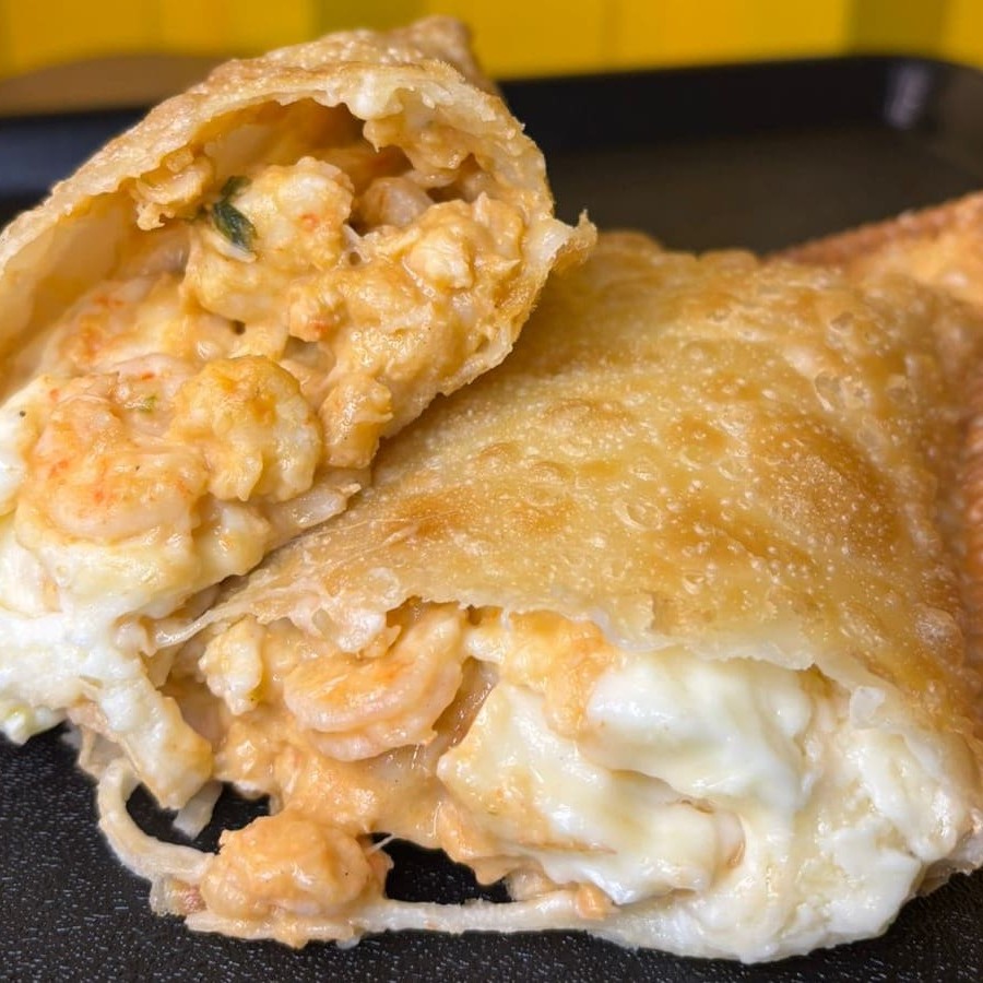 Camarões frescos e bem selecionados em uma explosão de sabor com a cremosidade da muçarela e do Catupiry. Uma experiência única e sofisticada para amantes do mar. Não é molho de camarão, é camarão de verdade ;) Dica Do Torres: Fica perfeito com a massa sabor pimenta! Nossos pastéis possuem 20cm, com recheio do início ao fim.
