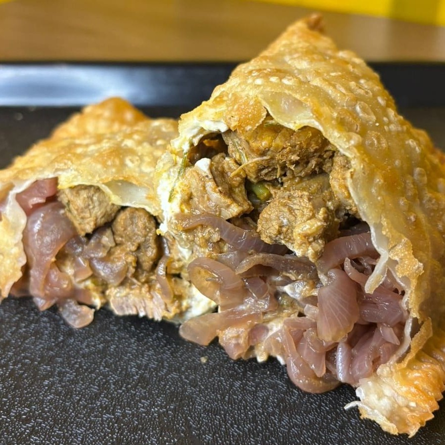 Deliciosas iscas de alcatra suculentas, combinadas com o toque cremoso do cream cheese e a cebola roxa caramelizada, que traz uma doçura irresistível. Um pastel gourmet de sabor incomparável para paladares exigentes. Dica Do Torres: Fica perfeito com a massa sabor Alho Roxo! Nossos pastéis possuem 20 cm, com recheio do início ao fim.