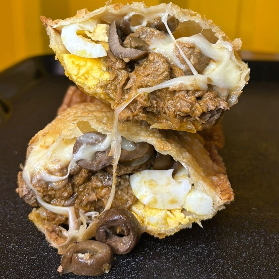 Alcatra nobre, combinado com a muçarela derretida, ovo cozido e azeitonas pretas, criando um sabor intenso e equilibrado. Perfeito para quem busca um pastel completo e inesquecível. Dica Do Torres: Fica perfeito com a massa sabor Alho Roxo! Nossos pastéis possuem 20 cm, com recheio do início ao fim.