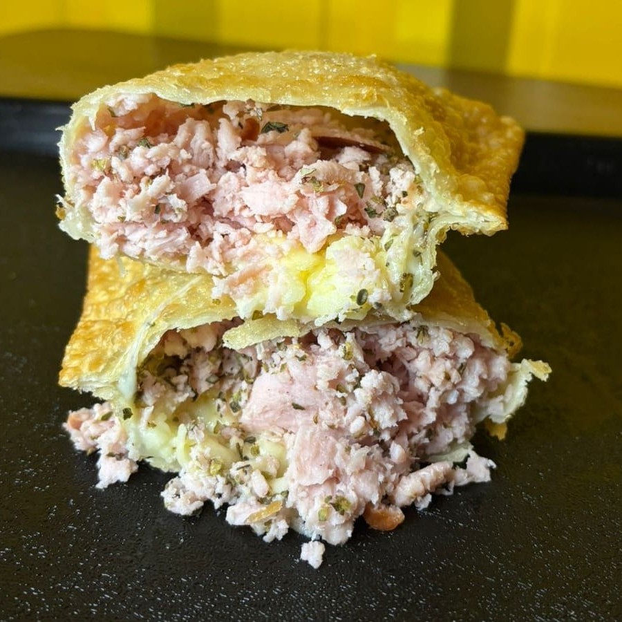 Peito de Peru leve e saboroso, com muçarela derretida e um toque de orégano. Delicado e delicioso, perfeito para quem busca leveza sem abrir mão do sabor. Nossos pastéis possuem 20 cm, com recheio do início ao fim.
