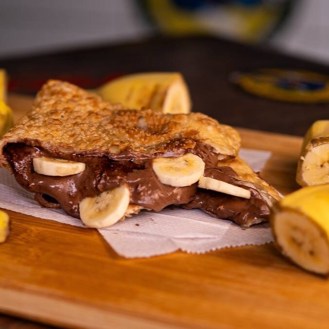 Delicioso pastel de banana com queijo minas, canela e açucar