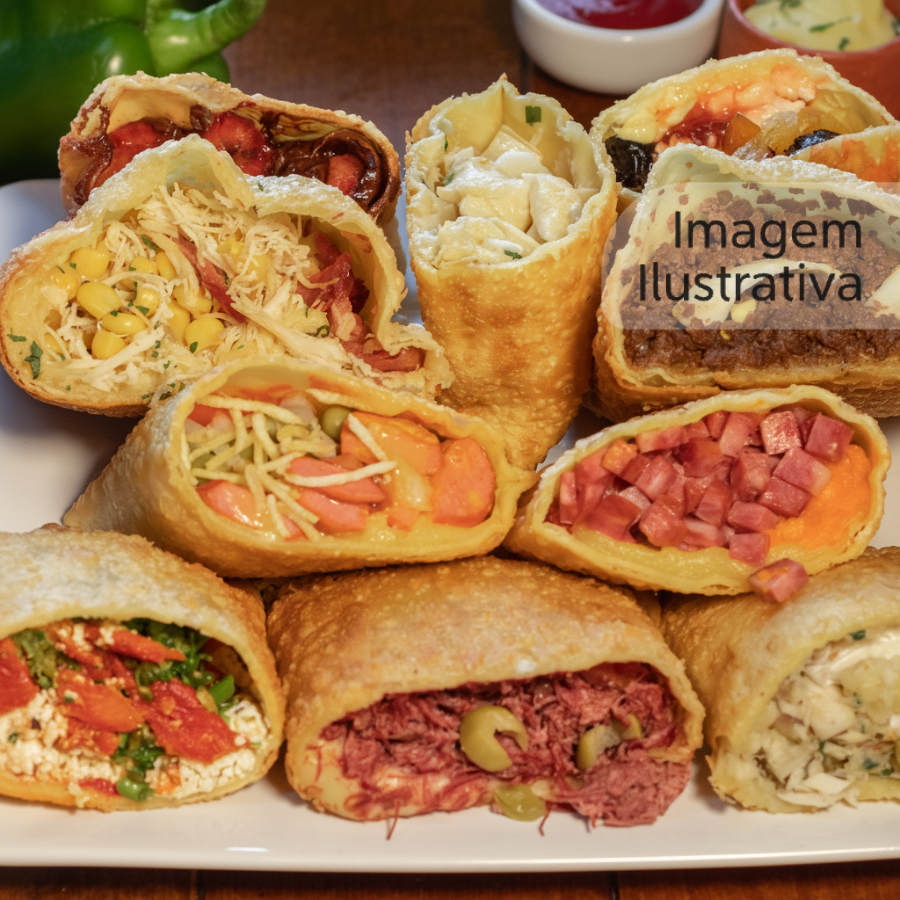 Acompanha: tomate, cebola, pimentão, coentro, queijo, presunto, passas, ovos de codorna, milho, ervilha, alho-poró, azeitona, parmesão, orégano, cheddar, catupiry, bolo jack e maionese temperada.