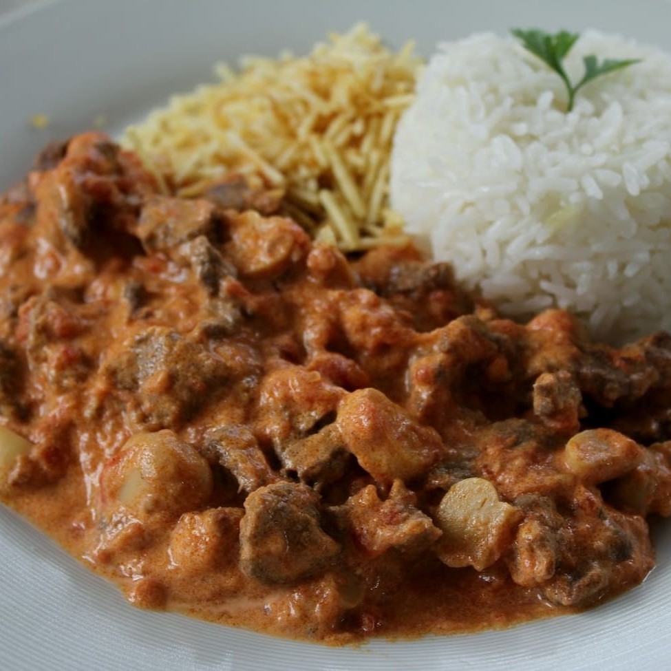 Um delicioso Filé de Molho ao de Camarão, com um feijão bem temperado, Arroz branquinho e farofa com purê de Batata