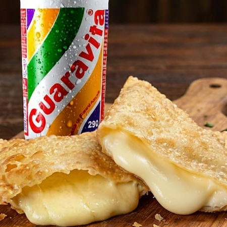 Pastel frito recheado com queijo, irresistivelmente crocante e saboroso.