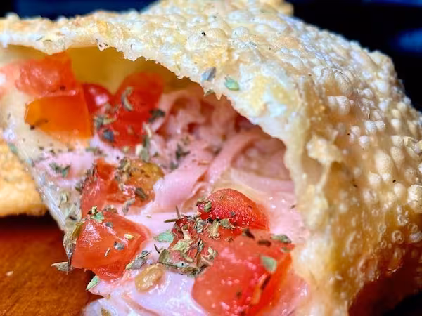 Pastel de 21cm recheado com queijo derretido, presunto saboroso, tomate fresquinho e um toque de orégano. Sempre sequinho, crocante e quentinho, é a combinação perfeita para quem ama o sabor clássico de pizza com muito recheio em cada mordida.