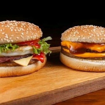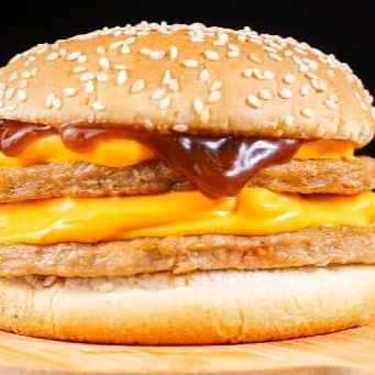 Pão gergelim, 2 hambúrguer, 2 queijo cheddar, barbecue.