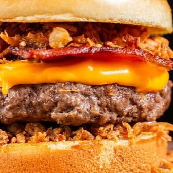 Pão brioche, blend 120g, cheddar cremoso, cebola crispy e bacon.