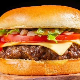 Pão brioche, blend 120g, queijo prato, alface tomate e cebola.